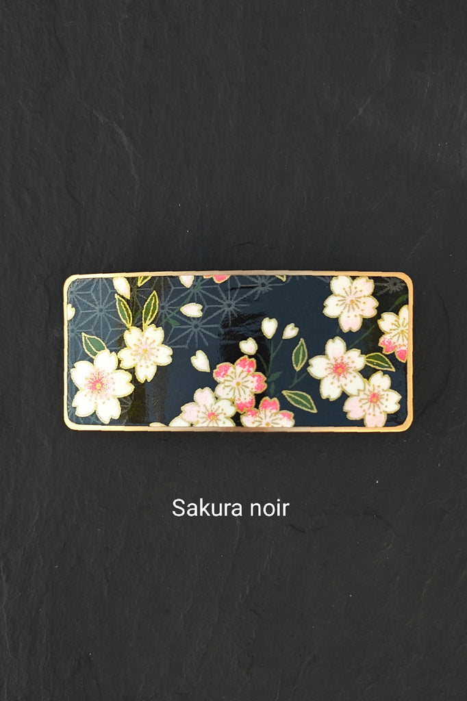 Grande barrette à cheveux en métal doré – Motifs japonais noirs