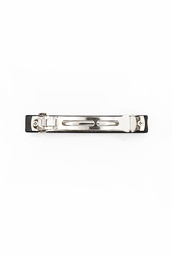 La base est en plastique noir et le fermoir en métal argenté est de 8cm.