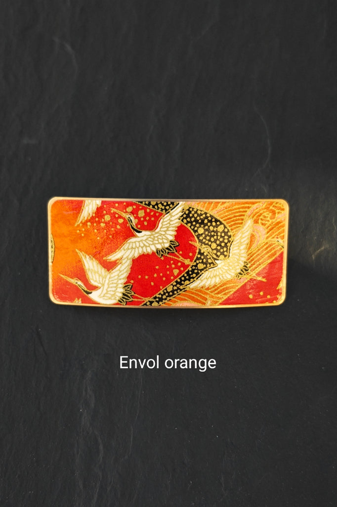 Grande barrette à cheveux en métal doré – Motifs japonais oranges