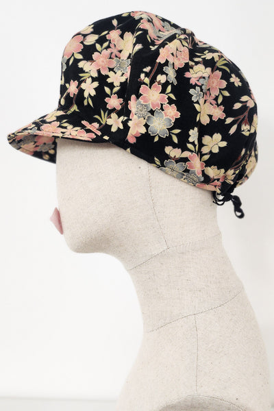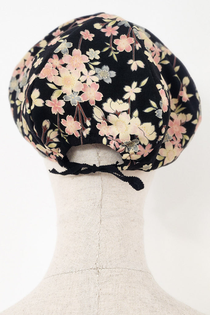 Soft gavroche-style cap made of Japanese fabric lined with plain black cotton inside.