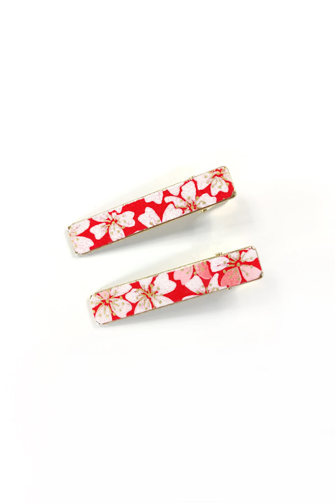 Petites pinces à cheveux en métal doré recouvertes de papier traditionnel japonais Washi.